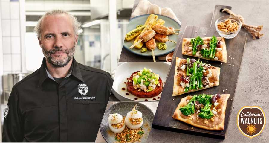 Spitzenkoch und Aromen-Virtuose Heiko Antoniewicz hat exklusiv für die CWC neue Rezepte entwickelt, in denen er das Flavor-Pairing mit kalifornischen Walnüssen perfekt herausgearbeitet hat.