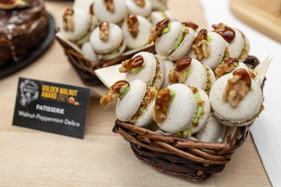 Die wohlverdienten 2. Plätze belegten Klaus Ruth (Backwaren) und Susanna Rupp (Patisserie). Ihre Rezepte waren „California Walnut Focaccia", eine Focaccia mit karamellisierten Walnüssen und Walnussöl und „Walnut Peppermint Delice", eine Neuinterpretation französischer Macarons mit salzigen karamellisierten Walnüssen und Walnussgrieß.