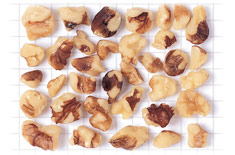 Beschreibung: Eine Portion Walnusskerne passt durch eine 9,35 mm breite Öffnung oder eine 11,11 mm runde Öffnung.